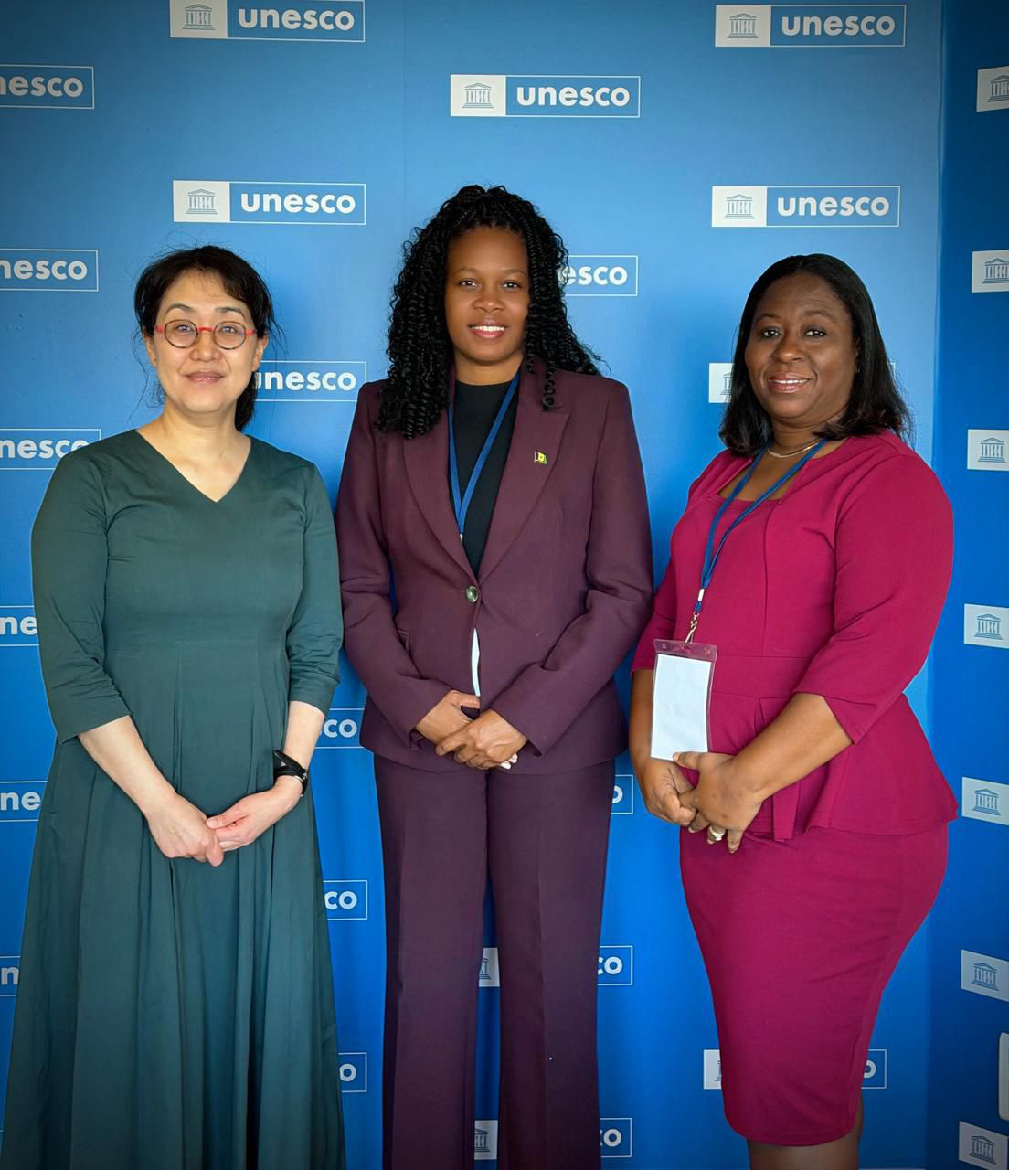 Minister of State in the Ministry of Education, Vocational Training, Digital Transformation and Information, Hon. Laverne King, and Ms Janeil Henry-Rose (Secretary General, SVG National Commission for UNESCO), on Wednesday, 15th April 2026, met with Ms Fumiko Ohinata (left), Secretary of the Convention for the Safeguarding of the Intangible Cultural Heritage (ICH) at UNESCO.